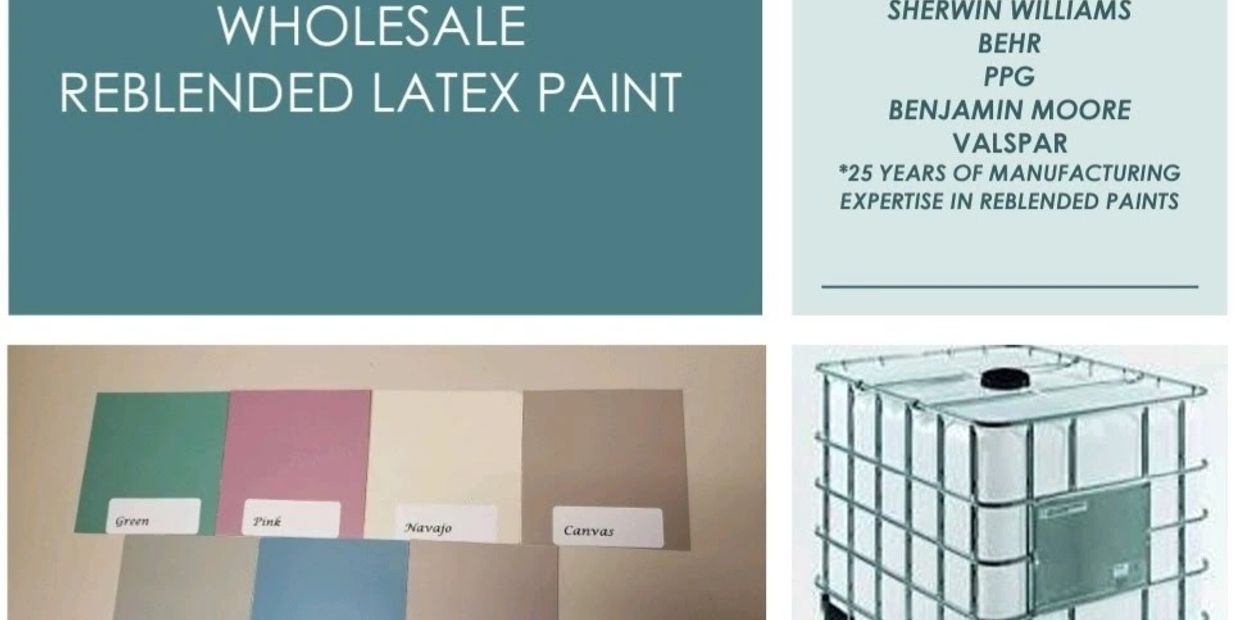 All paints are interior/exterior flat finish water based latex. The paints are all fresh production & are less than 6 months old at time of blending. Paints are blended and filtered in 3,000 gallon vats and packaged in 250 gallon industrial totes. The paint is stored in a climate controlled warehouse in California.